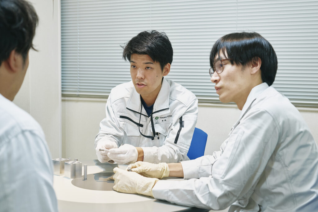 お客さまのニーズに応え、期待を超える新製品をつくるために、日々、製造や検査、分析、生産管理といったさまざまな部署とのミーティングを重ねています。