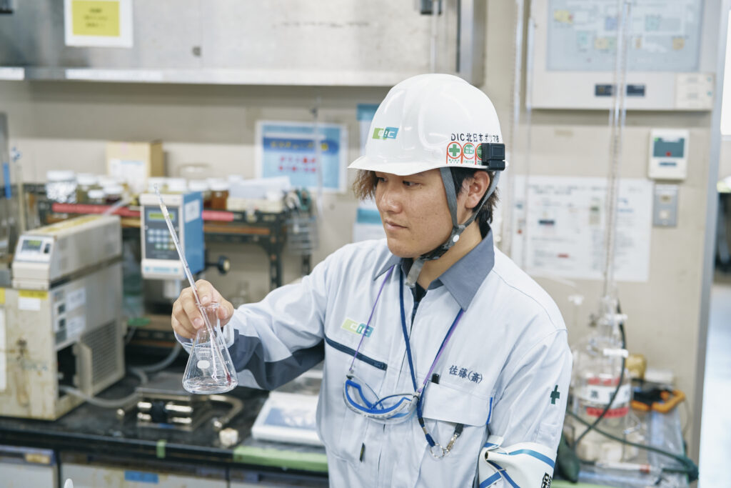 木質加工用のフェノール樹脂をメインに、塗料用エマルジョン樹脂や電子材料用のエポキシ樹脂などをつくっています。目には見えないところで、製品の高機能化を支えています。
