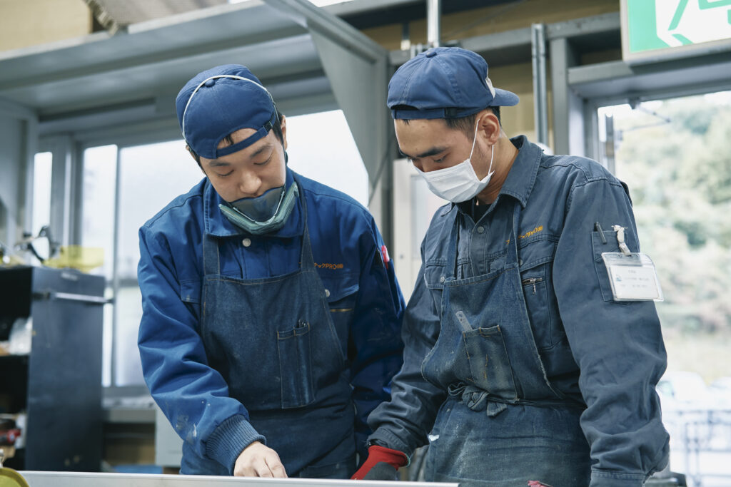 IT化やDXにより、勘や経験だけに頼らず高品質な製品づくりができる環境です。IoTの導入で国内外の設計拠点とも連携。ベトナムからの実習生も在籍し、協力して業務に取り組んでいます。