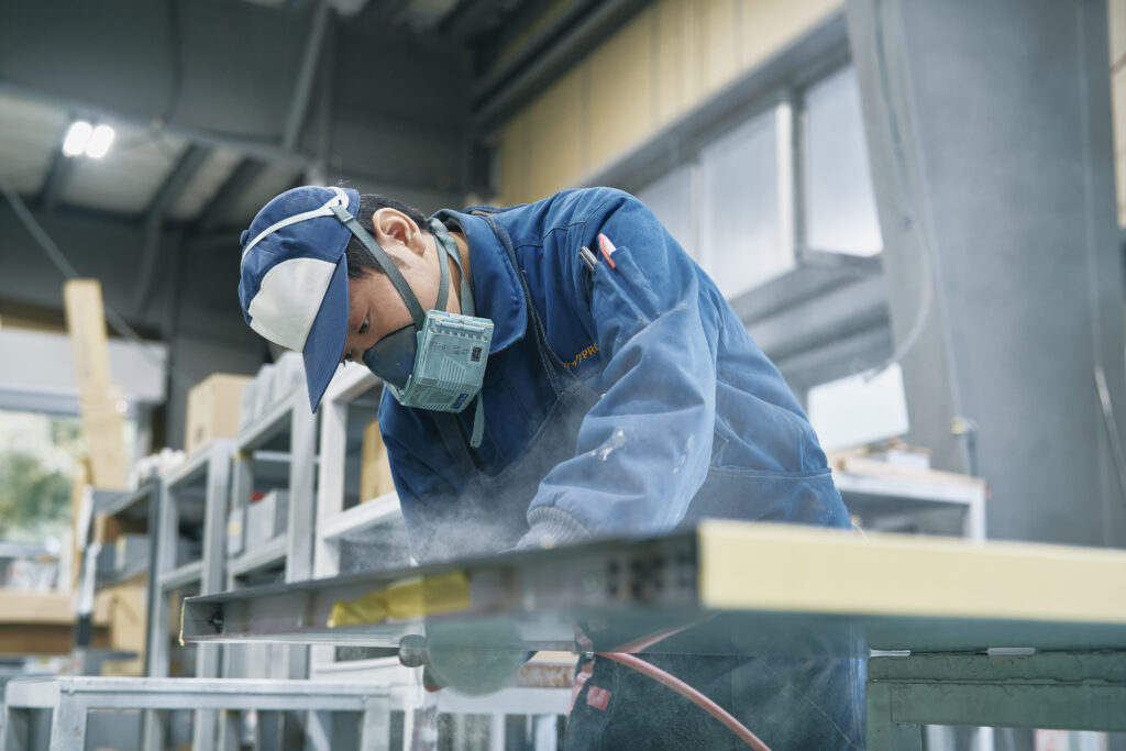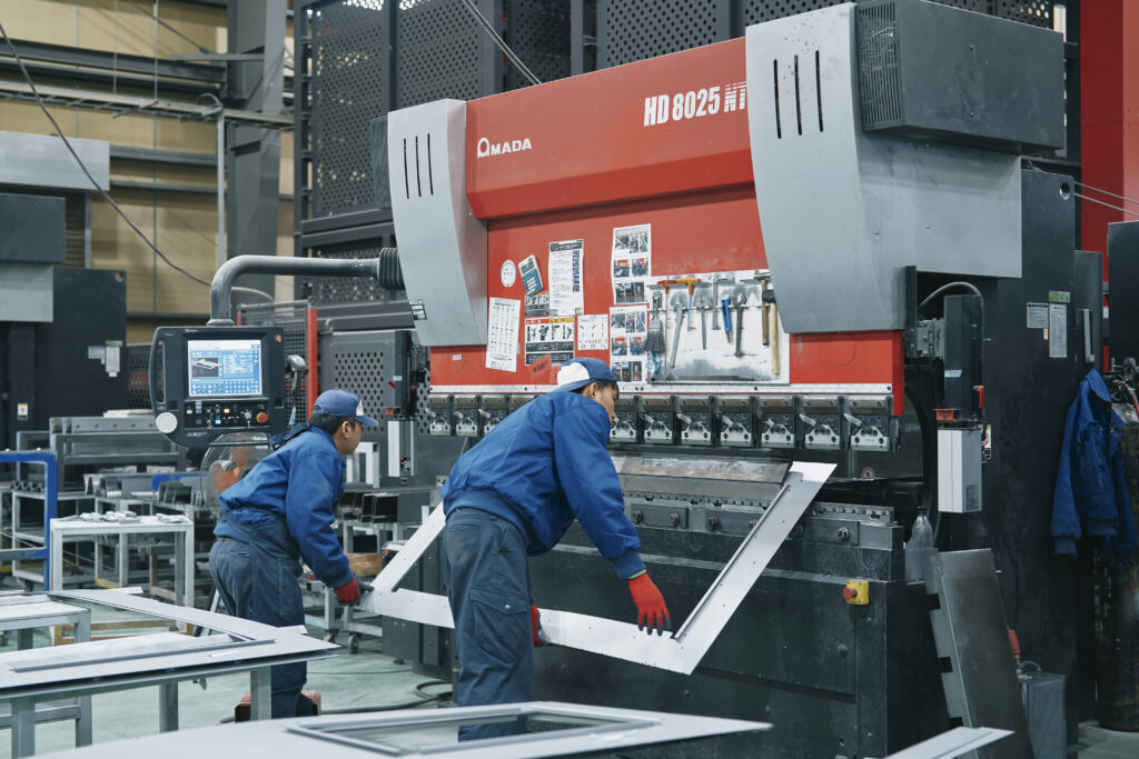 商業施設やビル、学校などで使用されるスチール製やステンレス製の特注建具をはじめ、防火ドア、外壁パネル、ひさしなど、1ミリ単位で大きさの違う製品を製作しています。
