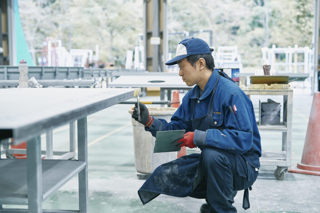 扉の溶接をしており、数ミリのズレが命取りになるような緻密さが求められるため、アーク溶接とTIG溶接を使い分けています。最初は難しかった作業も、経験を重ねるうちにできるようになり、成長を実感しています。失敗を恐れず挑戦することで技術が身につき、できることが増えるたびにやりがいを感じます。
