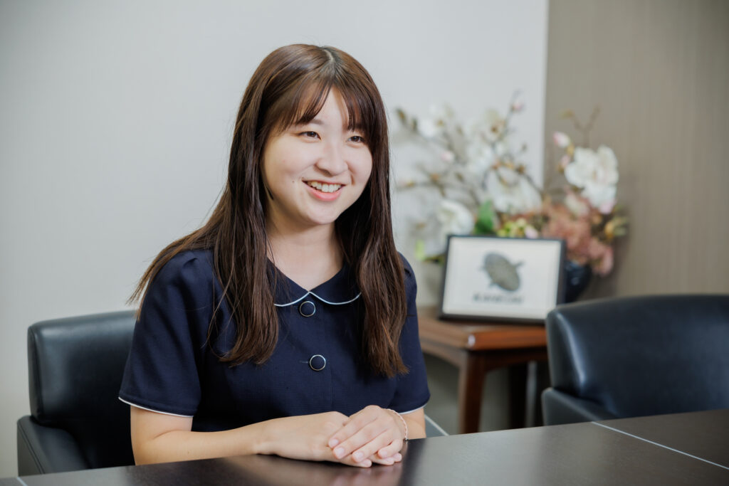 カネダイの竹野歩妃さんは、学生時代に学んだデザインスキルを活かし、営業の業務に加えてデザイン業務も担当しています。「デザインスキルを活かす機会は思ったより多く、商品パッケージやチラシなど、以前は外注していた仕事も任せていただいています」と話します。