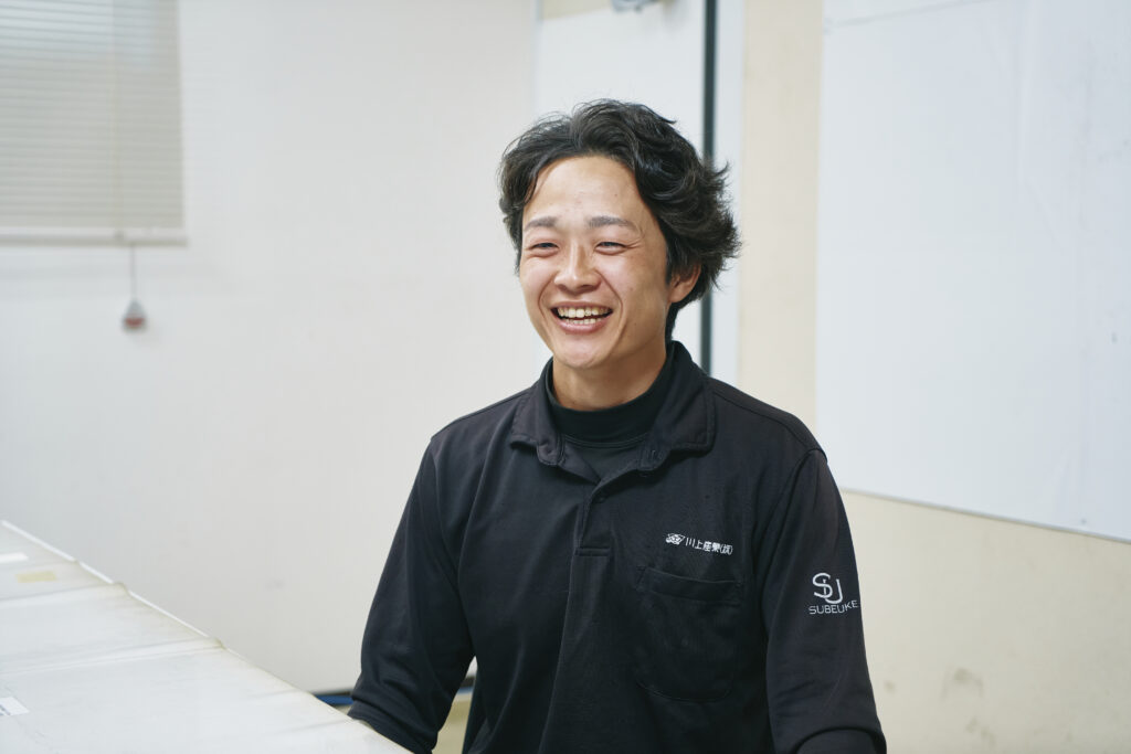 気泡緩衝材であるプチプチ®の製造を担当しています。原料を金型に流して機械で成形、品質を検査して倉庫に収めるまでが仕事です。新製品を正しく効率よくつくる方法を考えるときや、新しい機械が導入されたときなどは試行錯誤の連続ですが、壁を乗り越えるたびに、自分の成長と仕事のやりがいを実感します。