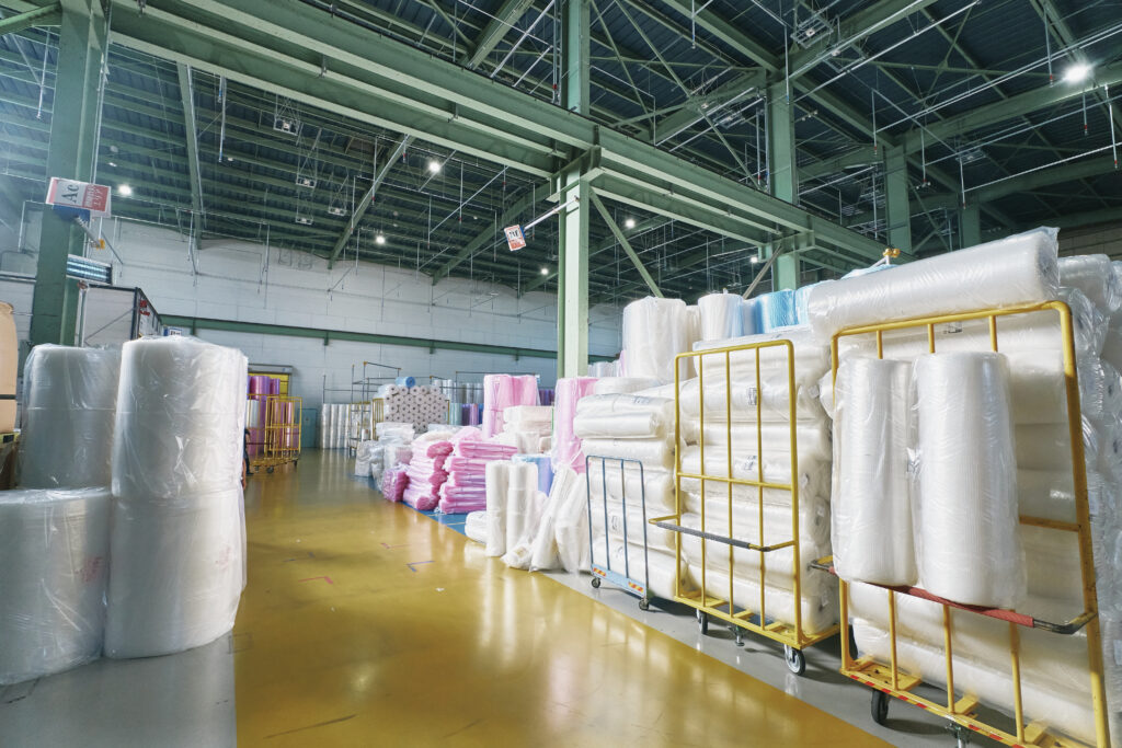 気泡緩衝材「プチプチ®」や同構造を応用した軽量剛性板「プラパール®」などを製造。プラパールは物流現場をはじめ、防音室や災害時のベッドなどに幅広く活用されています。