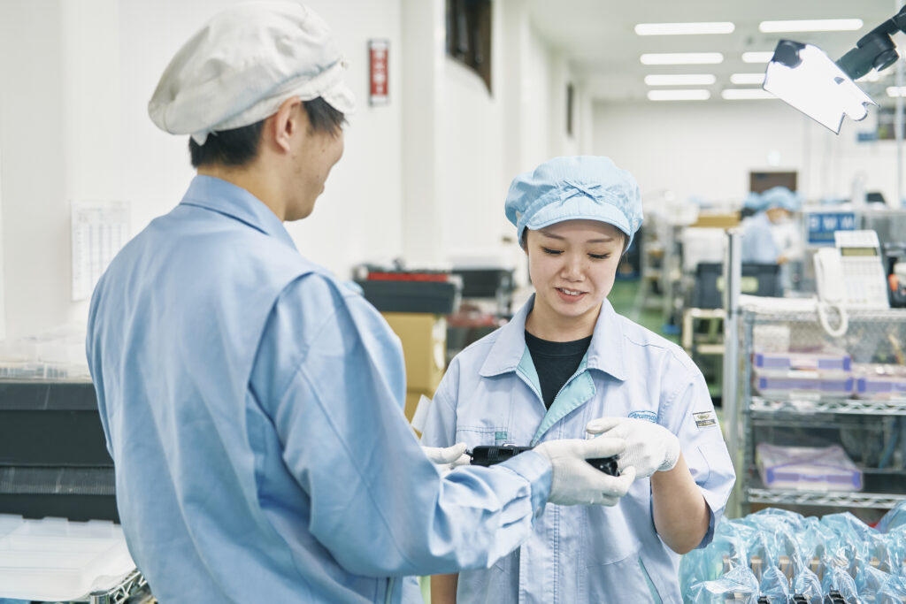 職場にはすぐに相談できる先輩やリーダーがいて、安心して働ける環境が整っています。入社後に必要な知識や技術を手厚く教えてもらい、外観検査の社内認定を取得。仕事の幅も広がりました。今後は生産数と品質のさらなる向上を目指し、より精度の高い検査で信頼される製品づくりに貢献していきたいです。