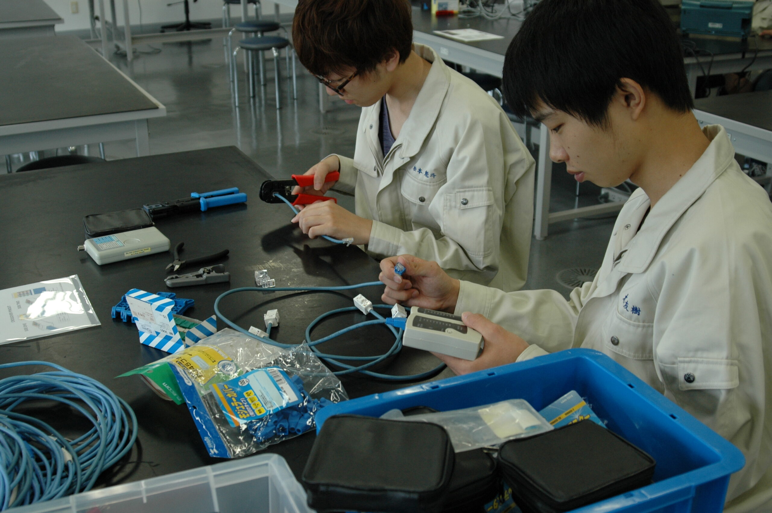 情報通信分野における有線及び無線ネットワークの両部門に対応した技術操作や、メンテナンスの知識と技能を学びます。工事担任者、無線従事者に必要な資格を取得できるレベルの訓練を実施。通信の基礎から専門的なスキルまで、実習を中心に習得できるのが特徴です。